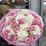 ромашка - 6 дана қызғылт спрей-раушан - 13 дана ақ гортензия - 10 дана