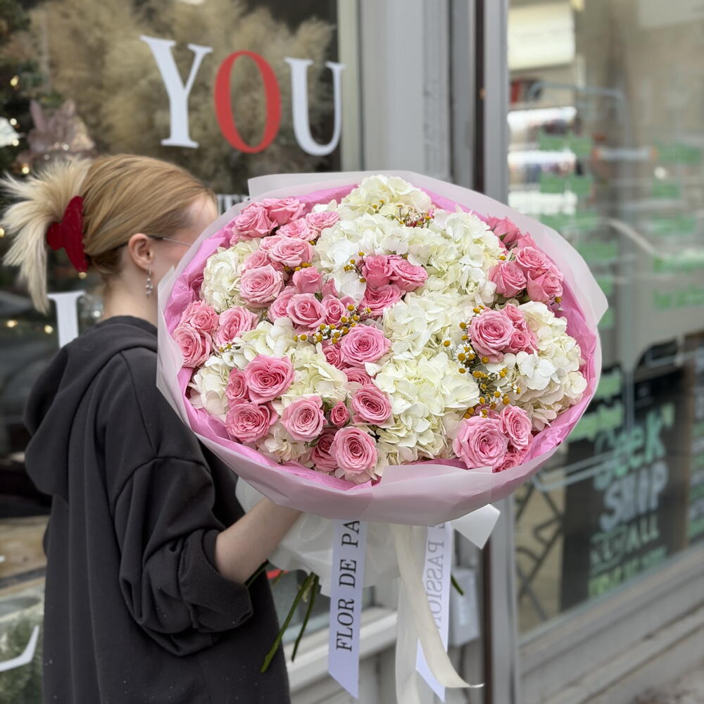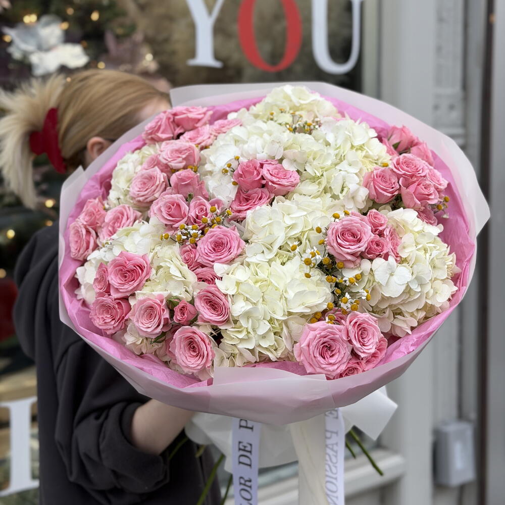 Тәтті кәмпит L өлшемі (гортензиялар , спрей раушандар, ромашкалар)