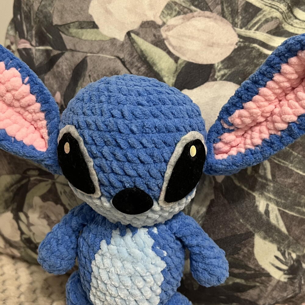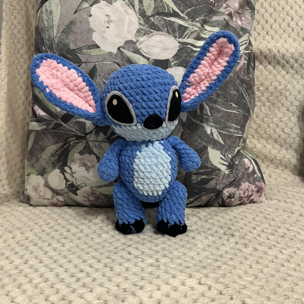The toy has movable lower paws, can sit and stand with support. The ears have a wire frame, so they can take different shapes. The eyes are glued, it is advisable to avoid direct contact with water. I do not recommend it to children under 3 years old.
