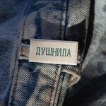 Handmade of natural clay ceramic badge with Russian text Душнила