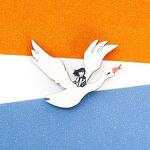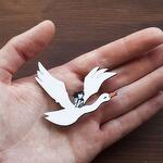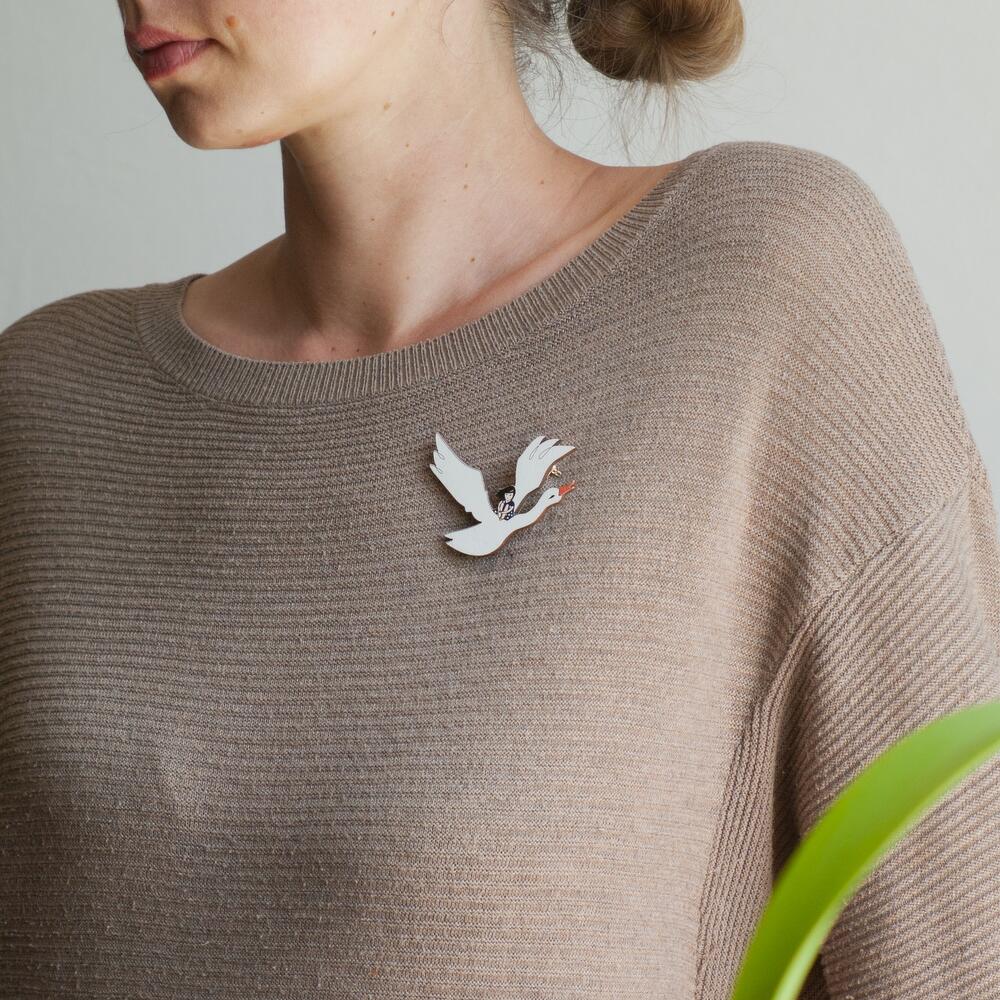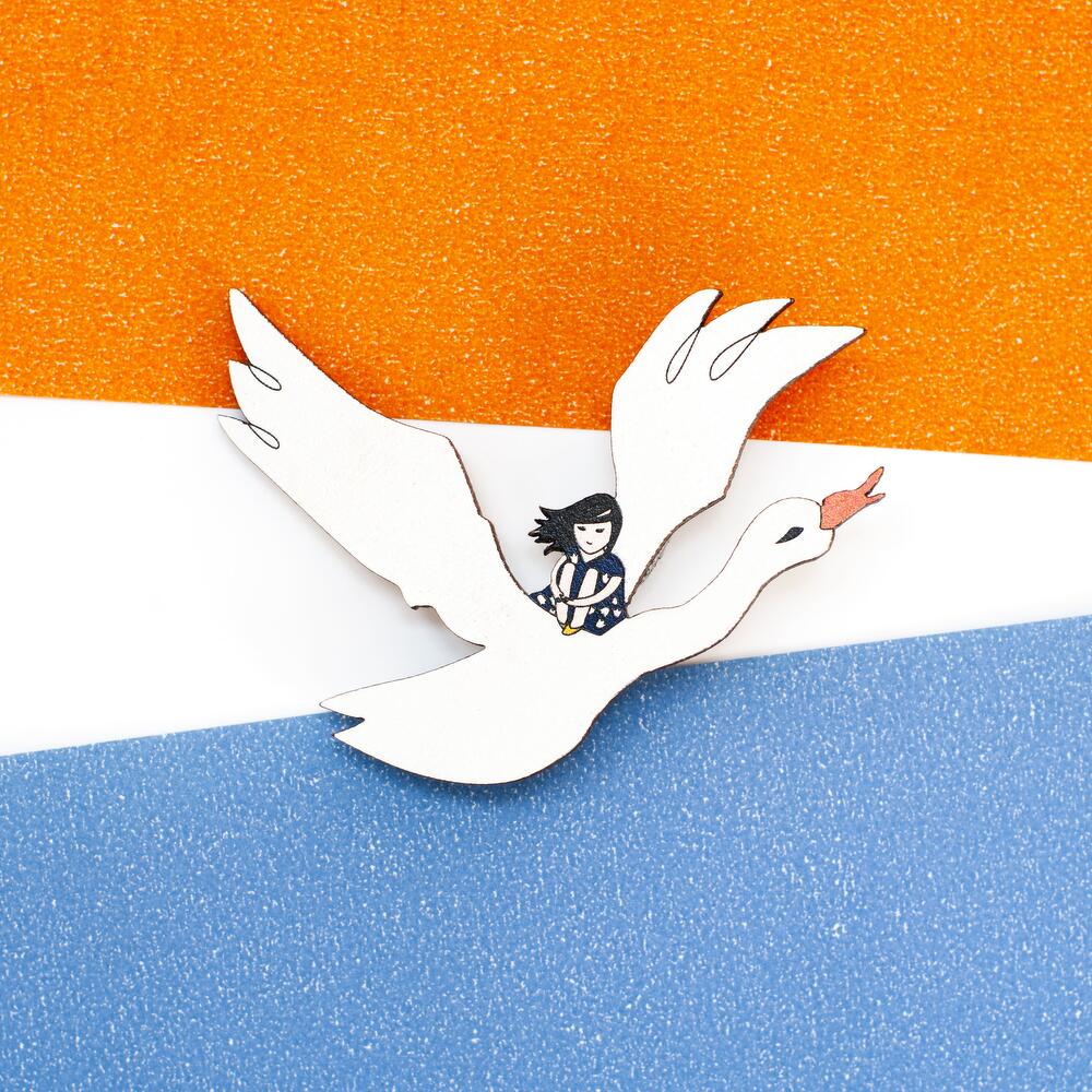 Pin in shape of fairy bird and child, size 65 x 48 mm
