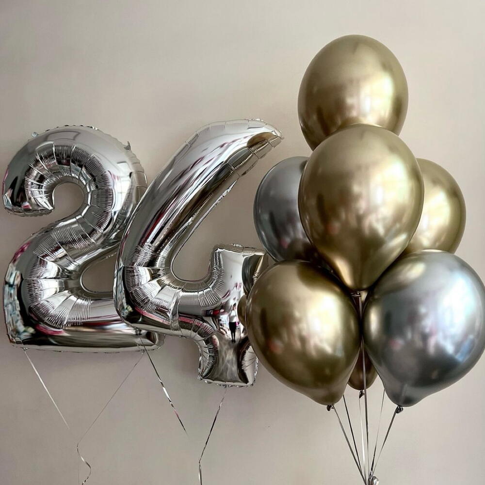 Zestaw balonów na urodziny: - 2 cyfry duże - 7 balonów lateksowych Cyfra może być dowolna . Balony wypełnione helem.