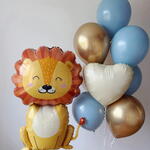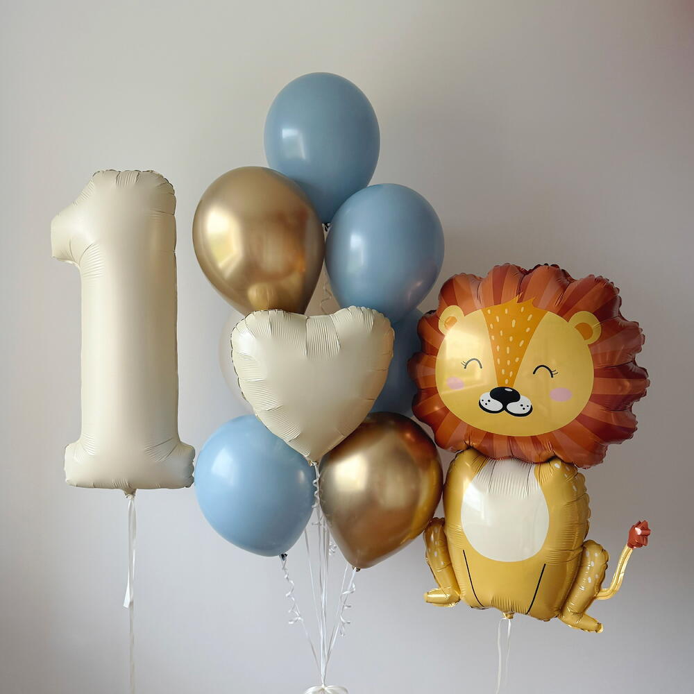 Zawiera: 🎈 7 balonów lateksowych, 🎈 2 balony chromowane, 🎈 foliowy balon w kształcie serca 💖, 🎈 foliowy balon w kształcie cyfry 1️⃣, 🎈 foliowy balon w kształcie lwa 🦁, 🎀 kokarda z atłasowej wstążki, ⚖️ obciążnik, 🛍️ torby do transportu.