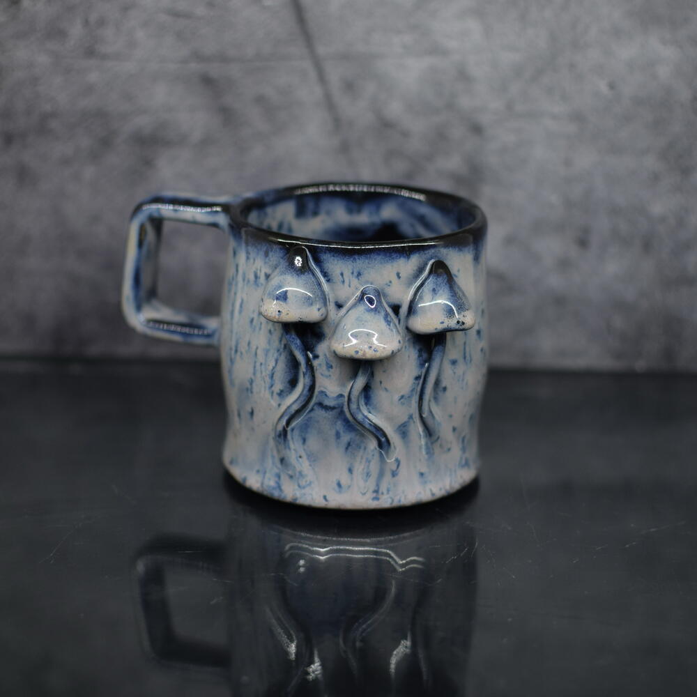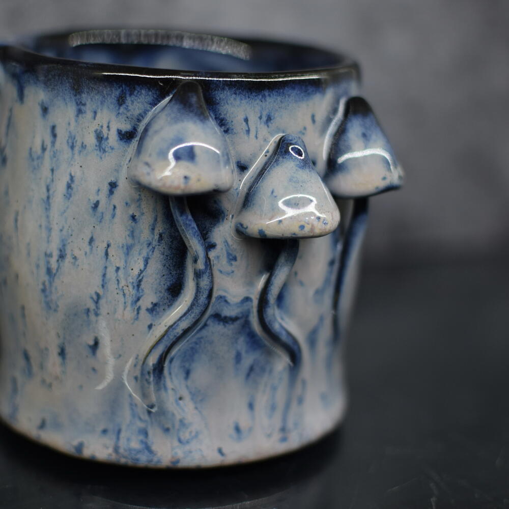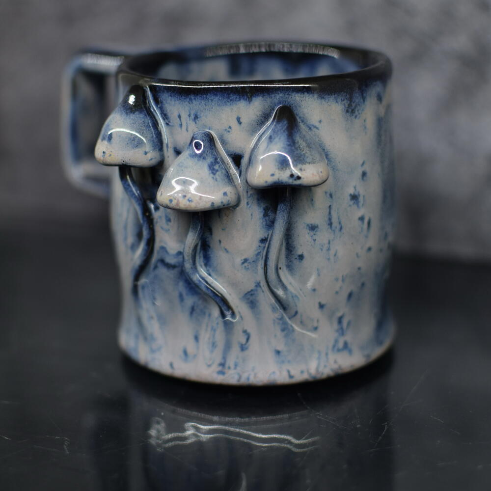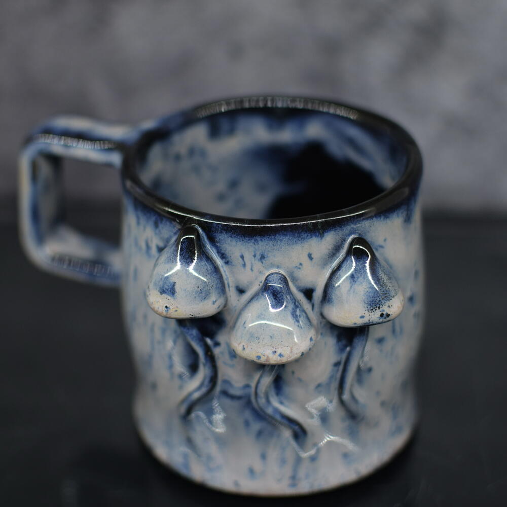 Шикарная кружка ручной работы в единственном экземпляре в стиле элегантный гоблинкор из керамики и волшебного сочетания нескольких глазурей и восьмилетнего опыта Hand-sculpted 3D Mushroom Ceramic Mug, Unique Blue Galaxy Pottery Cup, Gift for Mushroom Lovers