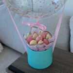 Wstążka - 1 szt. okrągłe pudełko - 1 szt. bobo balloon - 1 szt. sticker happy birthday - 1 szt. chocolate dipped strawberries - 12 szt.