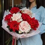 Czerwona róża - 9 szt. Różowa róża - 6 szt. Pakowanie - 1 szt.