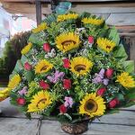 Solidago - 30 szt. oddech niemowlęcia - 20 szt. czerwona róża - 12 szt. estatice - 8 szt. słoneczniki - 12 szt.