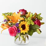 Make this day their best day. Our local florist handcraft a colorful array of flowers in a clear glass vase to create a celebration in bloom. Perfect to give for a special reason or to simply share a smile. Details The Deluxe Bouquet is approximately 15H x 16W. Designed by florists, ready to display. For long–lasting blooms, replace the water daily. We suggest trimming the stems every couple days. Pet Safety Precautions: This bouquet or plant may include flowers and foliage that are known to be toxic to pets. To keep them safe, be sure to keep this arrangement out of your pets reach.