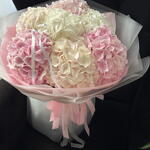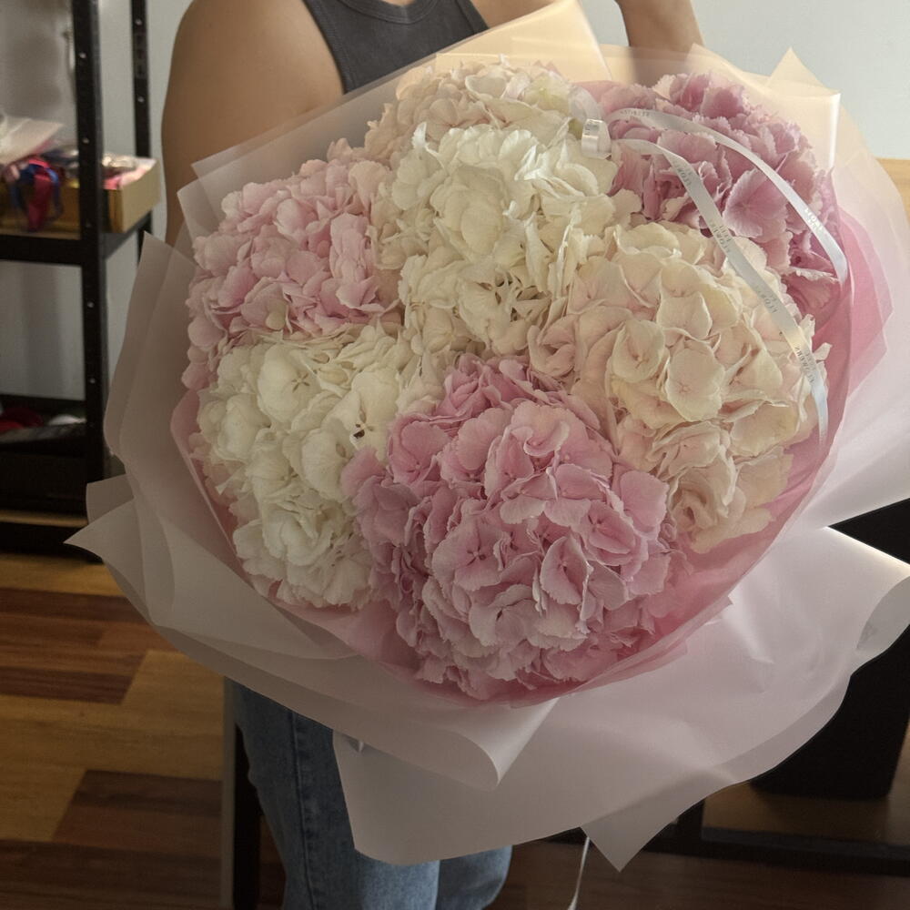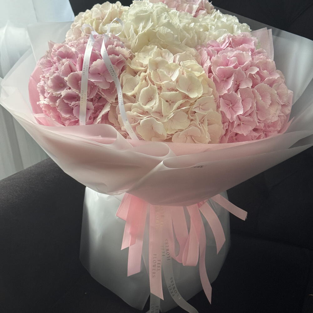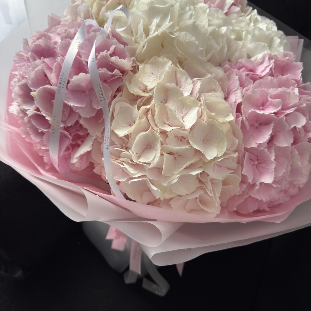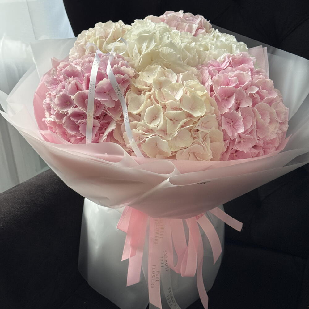 Nasz wykwintny monobukiet stanie się prawdziwym symbolem delikatności i wyrafinowania. W jego skład wchodzą 3 białe i 4 różowe hortensje. Każdy kwiat charakteryzuje się wyjątkową fakturą i aksamitną fakturą, które ucieleśniają czystość i delikatność relacji. Bukiet ten będzie doskonałą kompozycją do dekoracji wnętrz lub wspaniałym prezentem świątecznym.