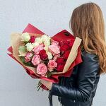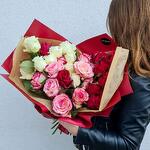 Blumenstrauß Liebe Die roten Rosen sind das ultimative Symbol der Liebe und Leidenschaft. Die weißen symbolisieren Unschuld und Reinheit. Ihre reinweißen Blütenblätter strahlen eine zeitlose Eleganz aus. Die pinken sind ein Ausdruck von Bewunderung und Anziehungskraft. Der Duft dieses Bouquets ist betörend und verführerisch. Er erinnert an romantische Abende und verströmt eine Atmosphäre der Sinnlichkeit und Hingabe. Mit diesem Bouquet schenken Sie nicht nur Blumen, sondern auch das Versprechen von Liebe in all ihren Facetten. Ein Blumenstrauß aus roten, weißen und pinken Rosen ist perfekt, um Ihre Gefühle auszudrücken, sei es zum Valentinstag, zum Jahrestag oder einfach, um jemandem zu zeigen, wie sehr Sie ihn schätzen. Dieser Strauß ist ein Symbol für die Vielfalt und Tiefe der Liebe, die Herzen im Sturm erobert und die Schönheit der Beziehung zelebriert. Wir achten ständig auf die letzten Trends im Bereich des Floristikdesigns und unsere Bouquets sind die Reflexion davon. Bei der Zusammenstellung verwenden wir nur ganz frische Blumen und die modernsten Materialien. Unser Team steckt besondere Liebe zum Detail in jedes Arrangement, deshalb finden Sie immer einen Sticker mit unserem Logo und ein Firmen Bändchen als Qualitätssiegel an jedem Strauß. Dem Blumenstrauß legen wir eine Anleitung zur Pflege und ein Mittel zur Verlängerung der Lebensdauer der Blumen bei. Jetzt ganz bequem bestellen und Ihre Blumen an Ihre Wunschadresse liefern lassen.