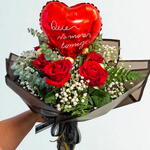Indulge in the exquisite joy of our Florists Specials. This breathtaking selection showcases one stem of aromatic eucalyptus, delicately paired with one piece of ethereal white gypsophila. The ensemble is elevated with a charming heart-shaped balloon, bringing a hint of whimsical delight to the arrangement. Further romantic appeal is added with six vivid Ecuadorian Red Roses, their passionate hues conveying deep feelings. To complete this alluring experience, enjoy six pieces of sumptuous Ferrero Rocher chocolates, a treat not only for the eyes but also for the palate. Revive your senses with this exceptional mixture of botanic beauty and sweet indulgence.