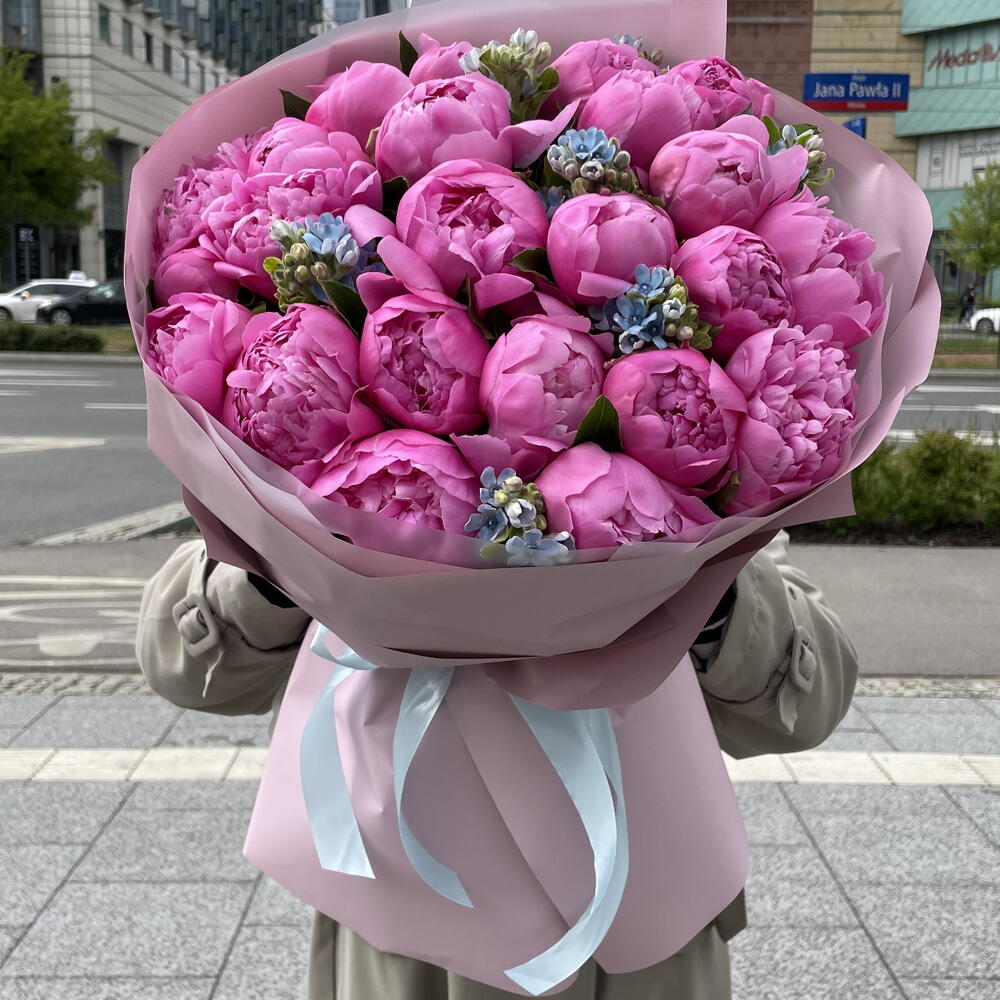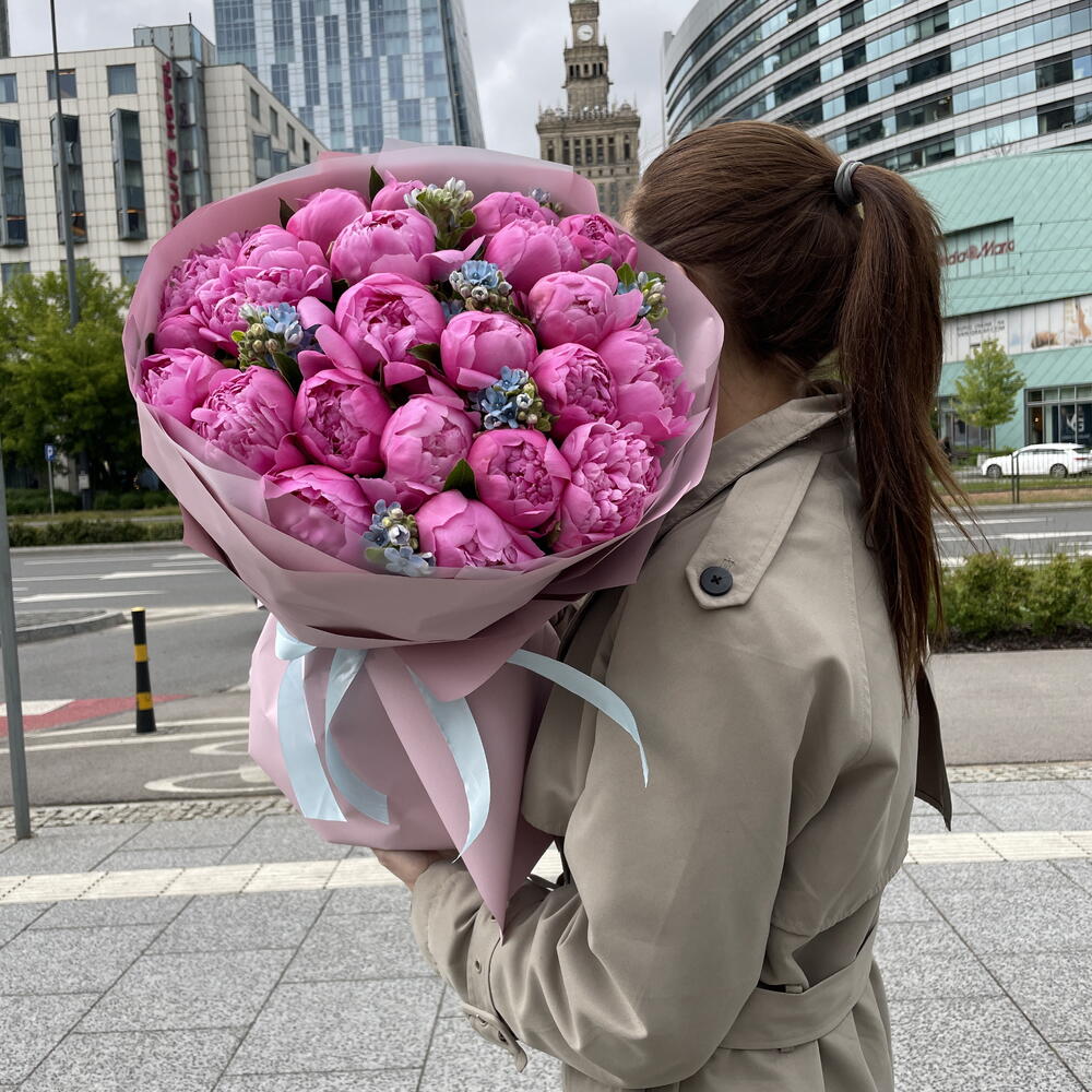 Bukiet 25 różowych piwonii