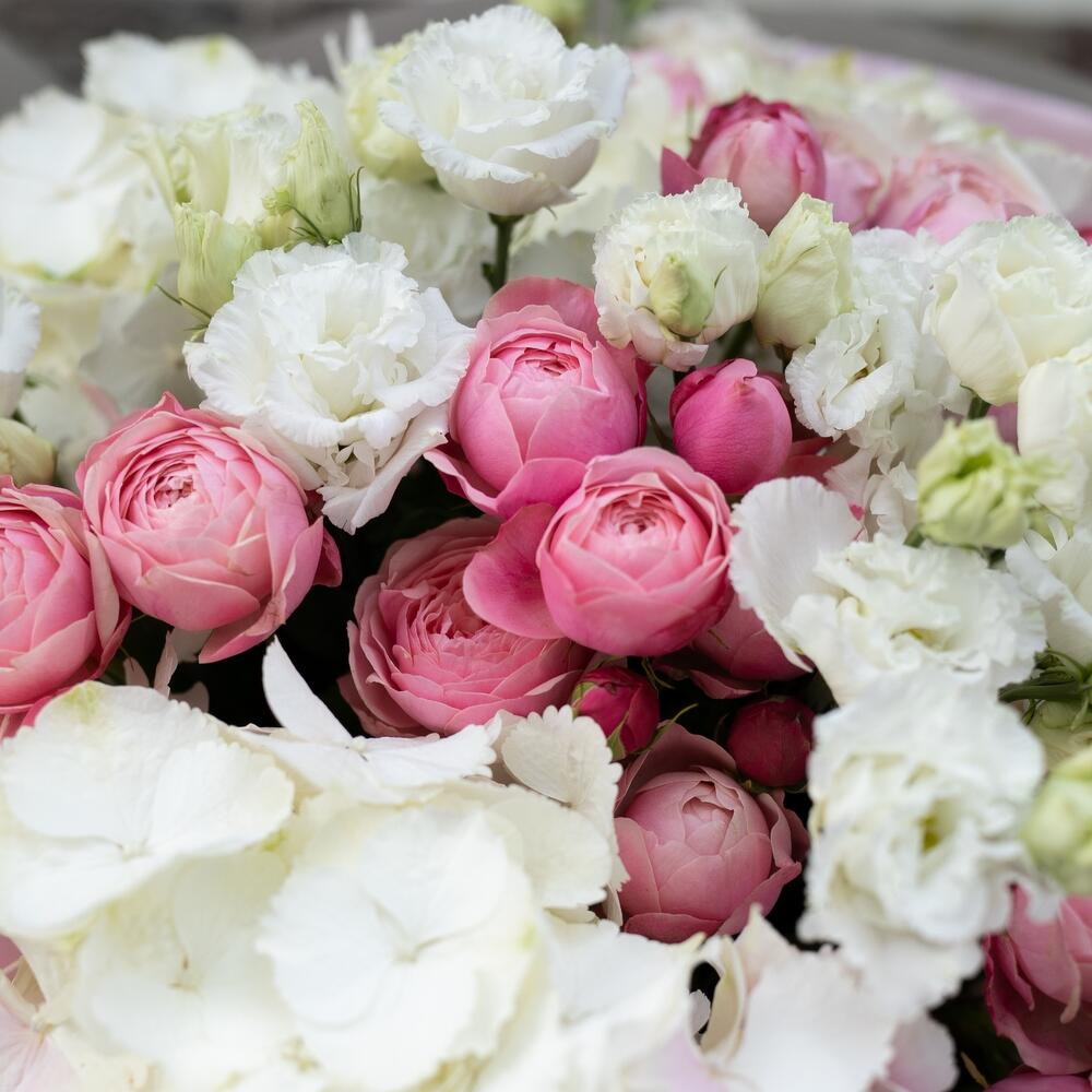 Eustoma - 6 szt. Hortensja - 4 szt. krzew piwonii róża - 7 szt.