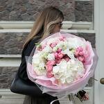 Bukiet hortensji i róży w kształcie piwonii