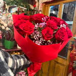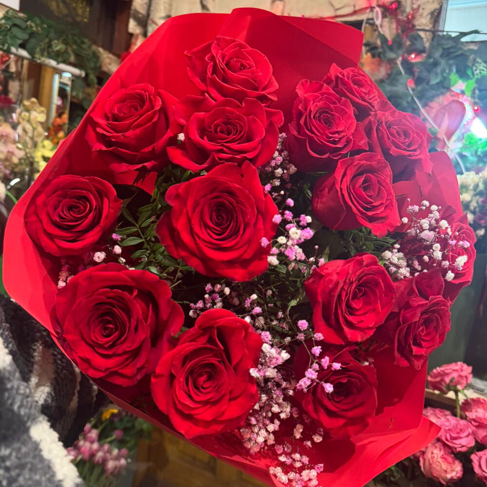 gipsówka kolorowa - 1 szt. zielen dekoracyjna - 1 szt. papier dekoracyjny - 1 szt. róża czerwone gipsowks - 17 szt.