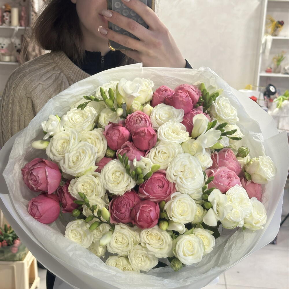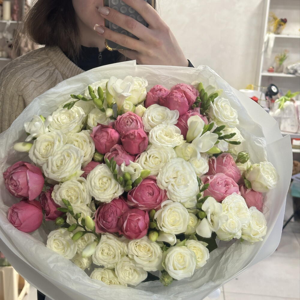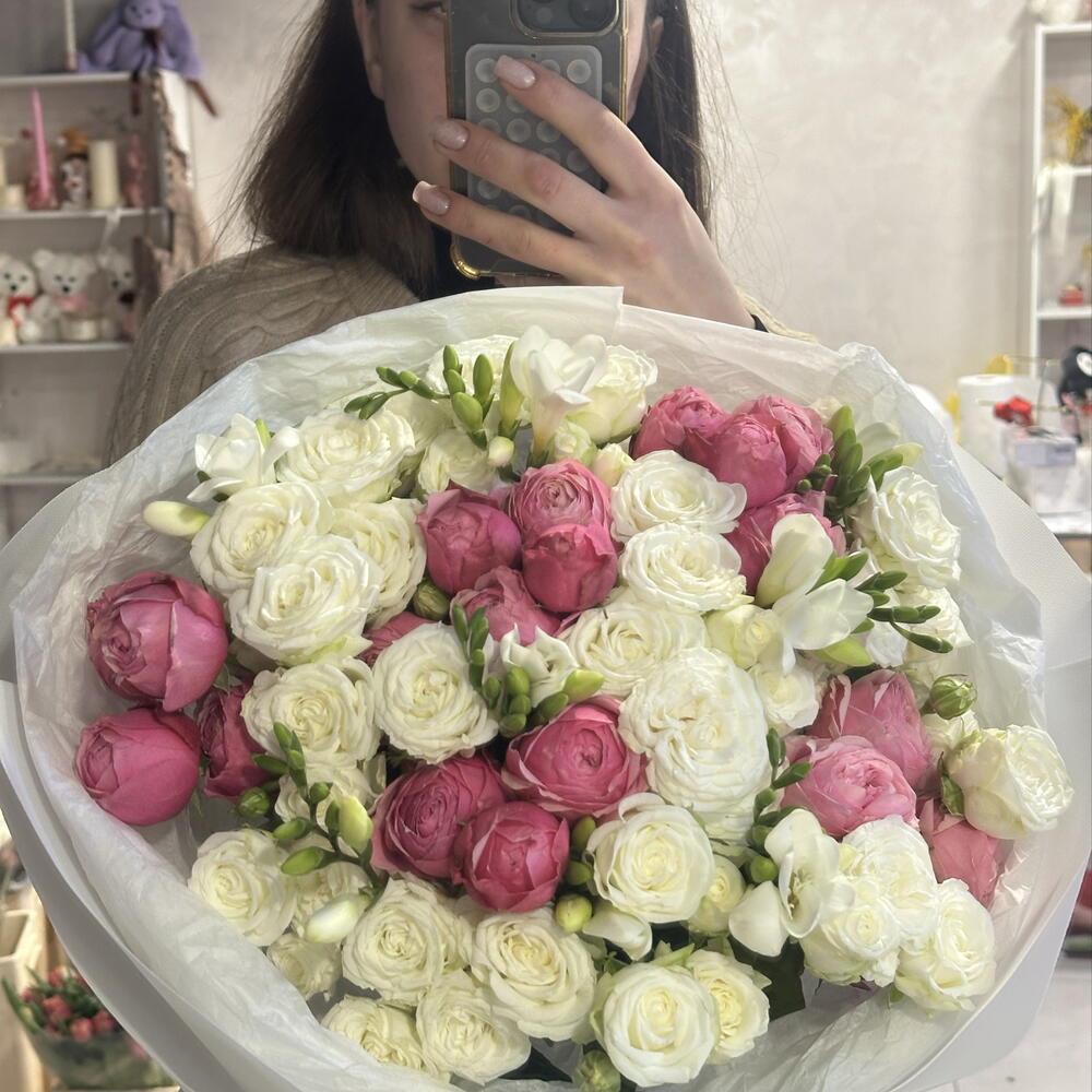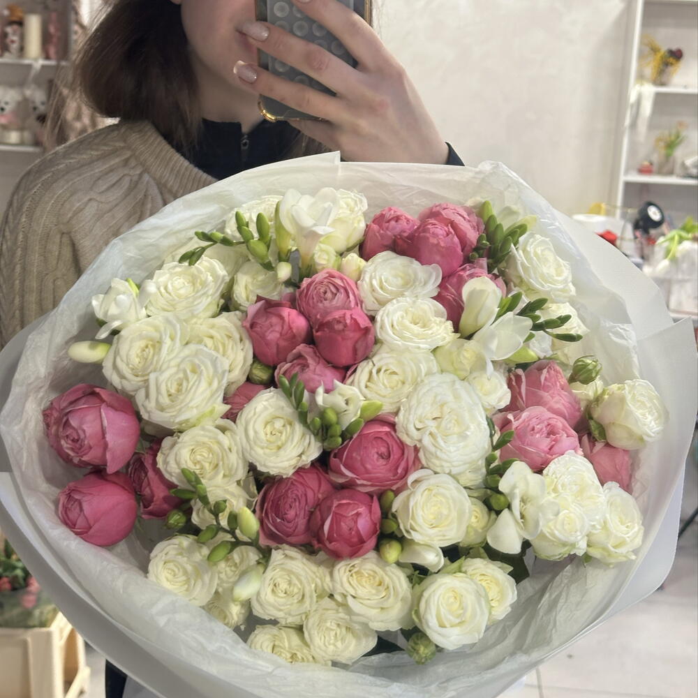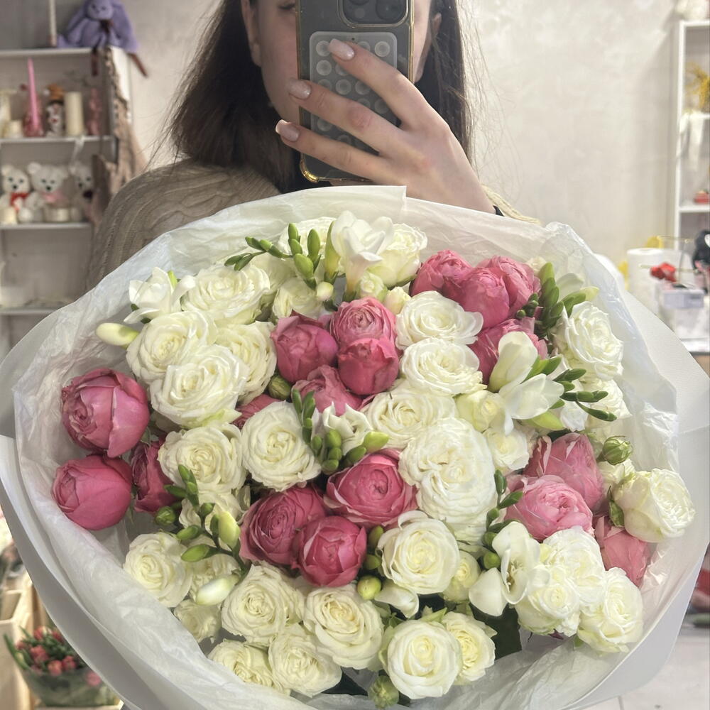 Delikatny bukiet z róży pieoniwej i pachnącej frezji