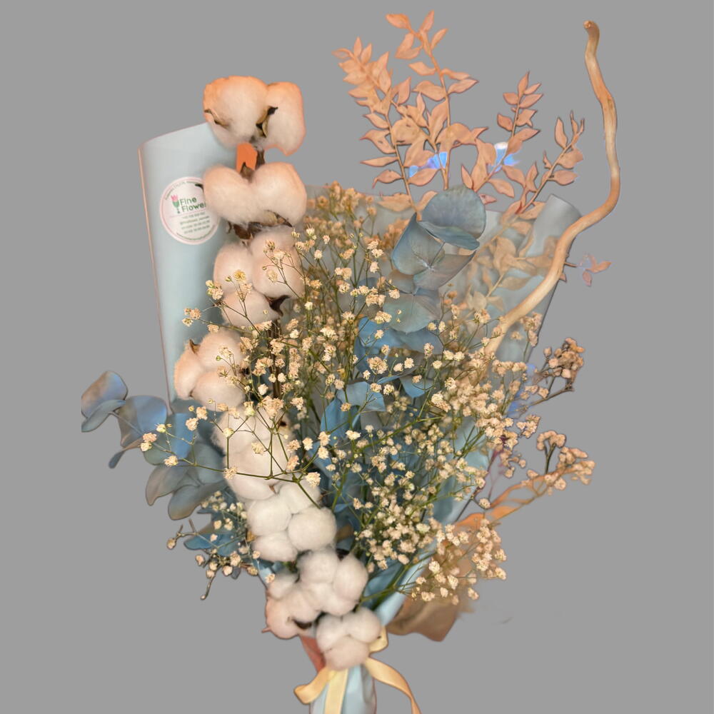 Ruskus - 1 szt. gipsophila - 1 szt. eukaliptus - 1 szt. bawełna - 1 szt. gałązka dekoracyjna - 1 szt.
