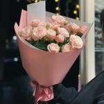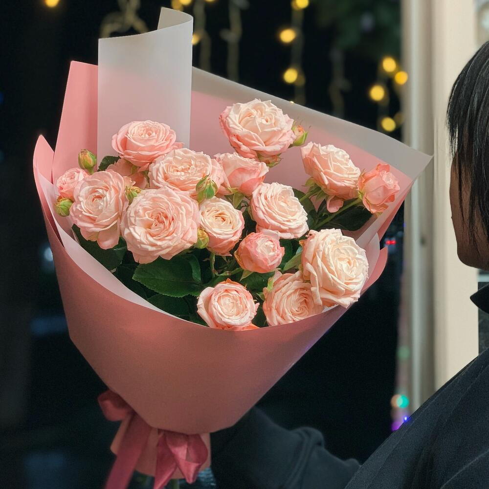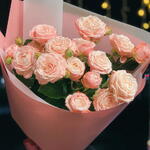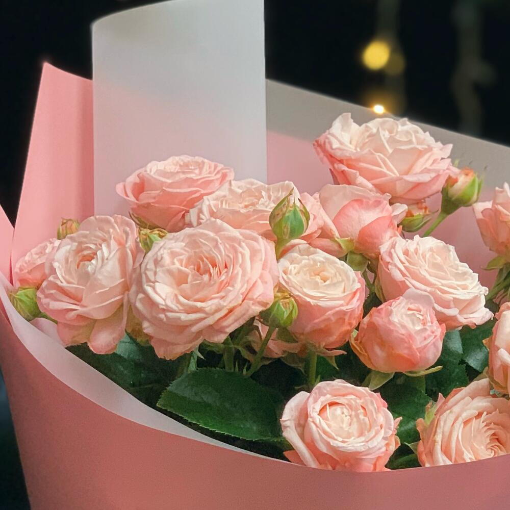 Delikatny i romantyczny bukiet skomponowany z trzech gałązek różowej róży gałązkowej. Subtelne, pełne kwiaty w pastelowym odcieniu różu tworzą lekką i elegancką kompozycję, idealną na drobny upominek lub wyraz czułości. Bukiet został starannie zapakowany w dekoracyjną papierową oprawę w odcieniach różu i bieli, która podkreśla jego świeżość oraz nadaje całości nowoczesny, estetyczny wygląd. To idealny wybór na urodziny, podziękowanie lub po prostu, aby sprawić komuś radość.