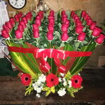 Solidago - 5 szt. Gerbera - 3 szt. czerwona róża - 50 szt. montecasino blanco - 5 szt.