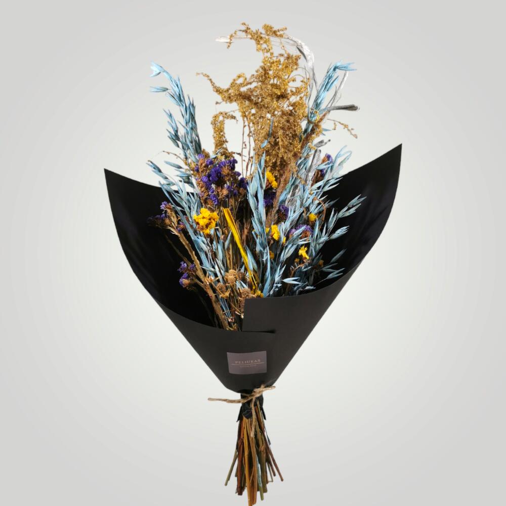 A great decoration detail and a long-lasting gift. A bouquet of various dry, artificial and stabilized plants. Neatly packaged in eco-friendly packaging. If you have any wishes, be sure to leave them in the comments. * IMPORTANT! The photo is provided as an example, the color and type of flowers and the color of the paper (while maintaining the monetary value) may change depending on the assortment at the time.