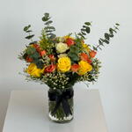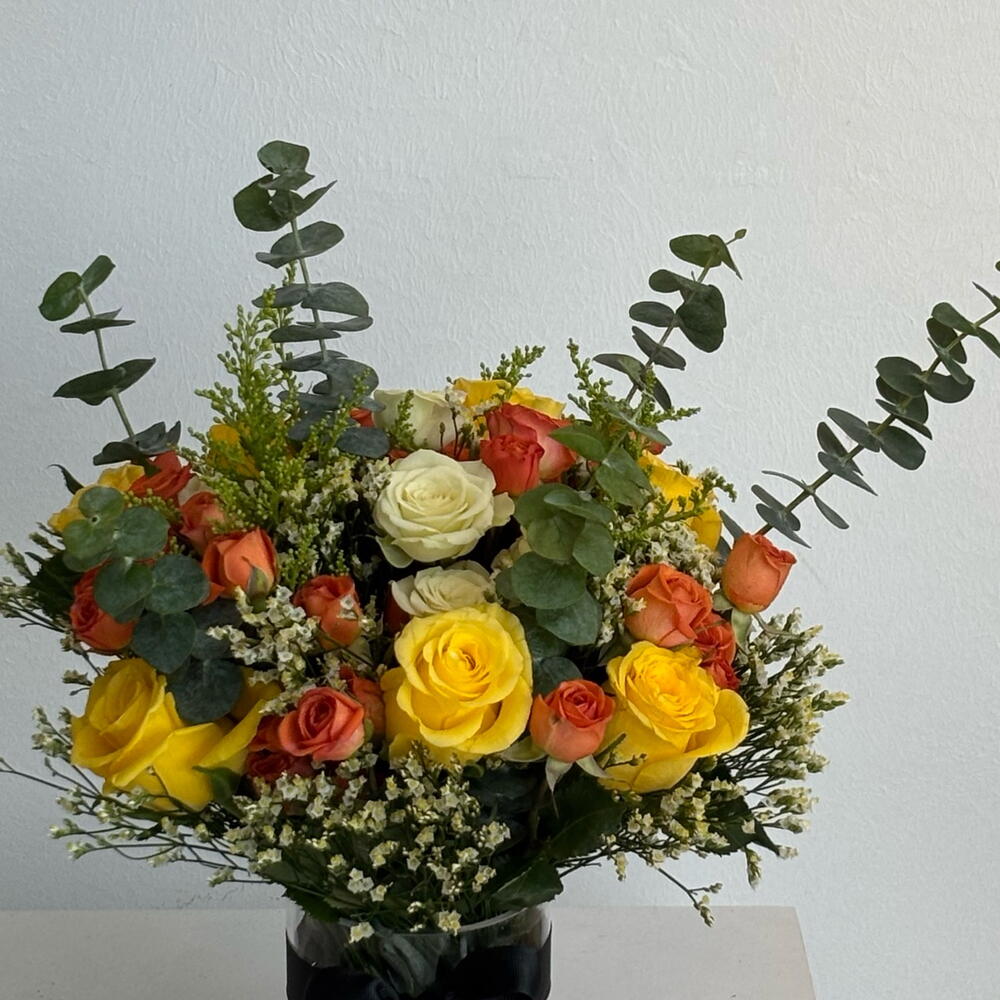 نقدّم لكم «اختيارات بائع الزهور الخاصة» — تنسيقًا فاخرًا يضم 6 قطع من الخضرة النقية الزاهية، مع لمسة نابضة بالحياة من 8 ورود صغيرة برتقالية و10 ورود ذهبية صفراء. وتكتمل الباقة بـ5 سيقان منتقاة يدويًا من الليمونيوم، مما يضيف تباينًا جميلًا لهذا المشهد البديع. باقة غنية ومفعمة بالحيوية ستسعد أي شخص يتلقّاها.