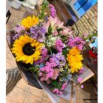 Puokštę sudaro ryškių gėlių miksas. Puokštė gali skirtis nuo pavaizduotos nuotraukoje.