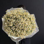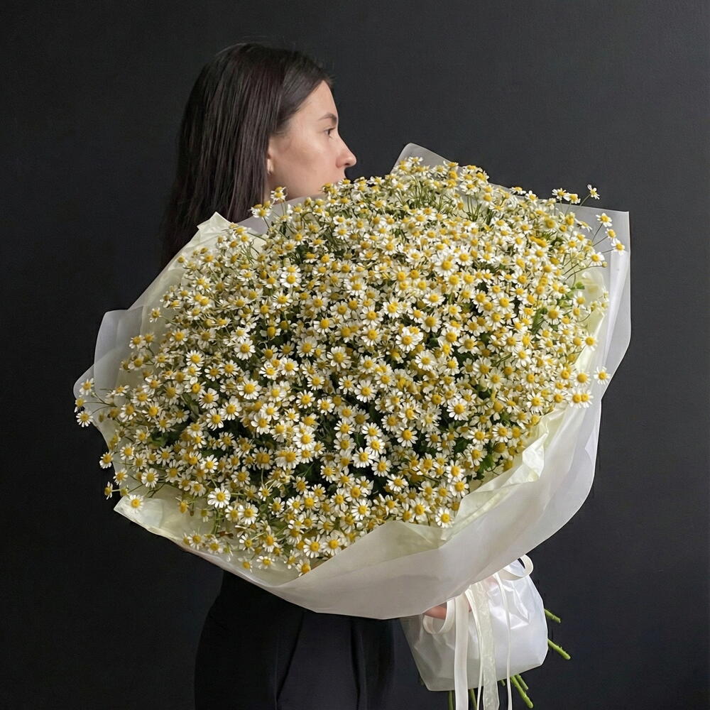 Zapierający dech w piersiach kawałek lata! Ten masywny, niesamowicie obszerny bukiet zawiera 51 łodyg delikatnych rumianków (matricaria). Z setkami maleńkich kwiatków wygląda i sprawia wrażenie wielkiej dzikiej łąki w twoich ramionach. Owinięty w miękki, jasny papier, aby podkreślić jego naturalny urok, to prezent z efektem WOW, symbolizujący szczerość, ciepło i czystą radość. Idealny na romantyczne niespodzianki, urodziny lub rocznice. Tagi: Rumianek, Matricaria, Bukiet stokrotek, Gigantyczny bukiet, Kwiaty polne, 51 łodyg, Kwiaty letnie, Ogromny bukiet.