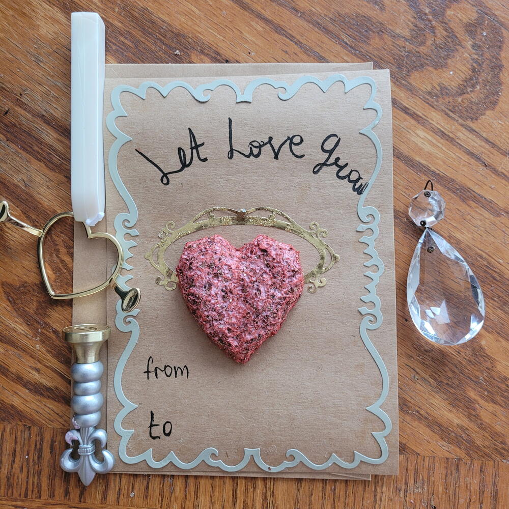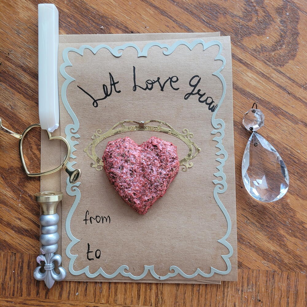 Greeting cards, gift tag with wilf flower seed heart