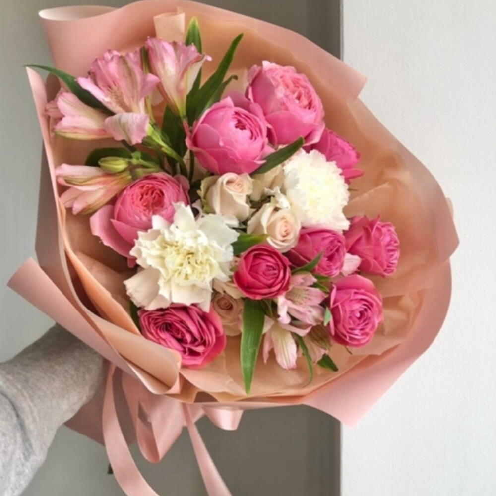Alstroemeria - 2 szt. róża gałązkowa - 3 szt. gozdzik - 2 szt.