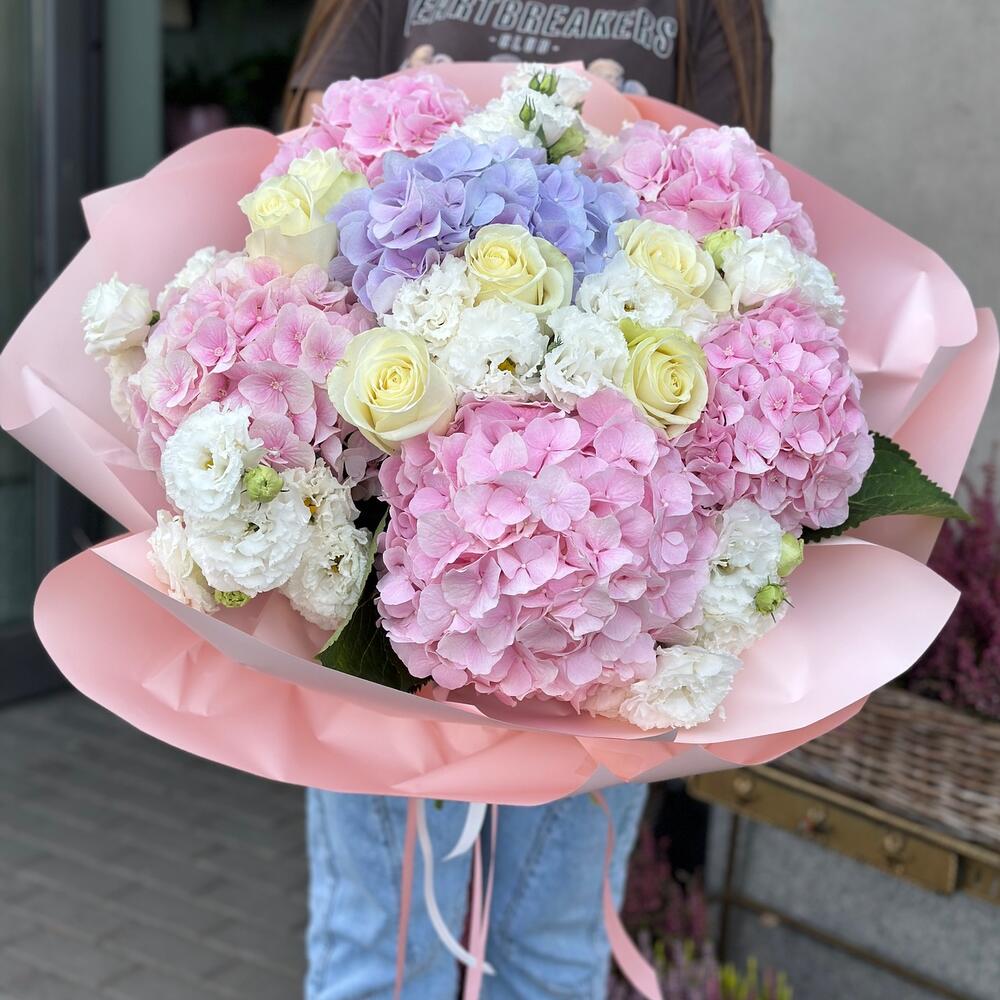 hortensia - 6 szt. róża - 10 szt. eustoma 10 - 10 szt.