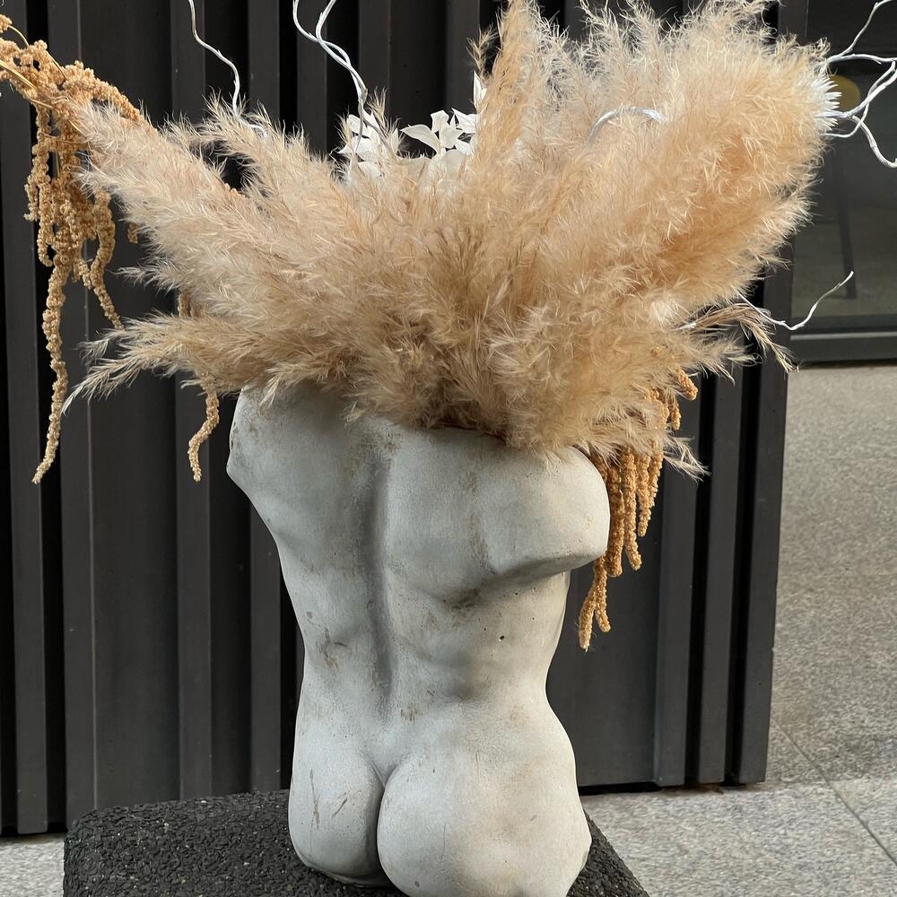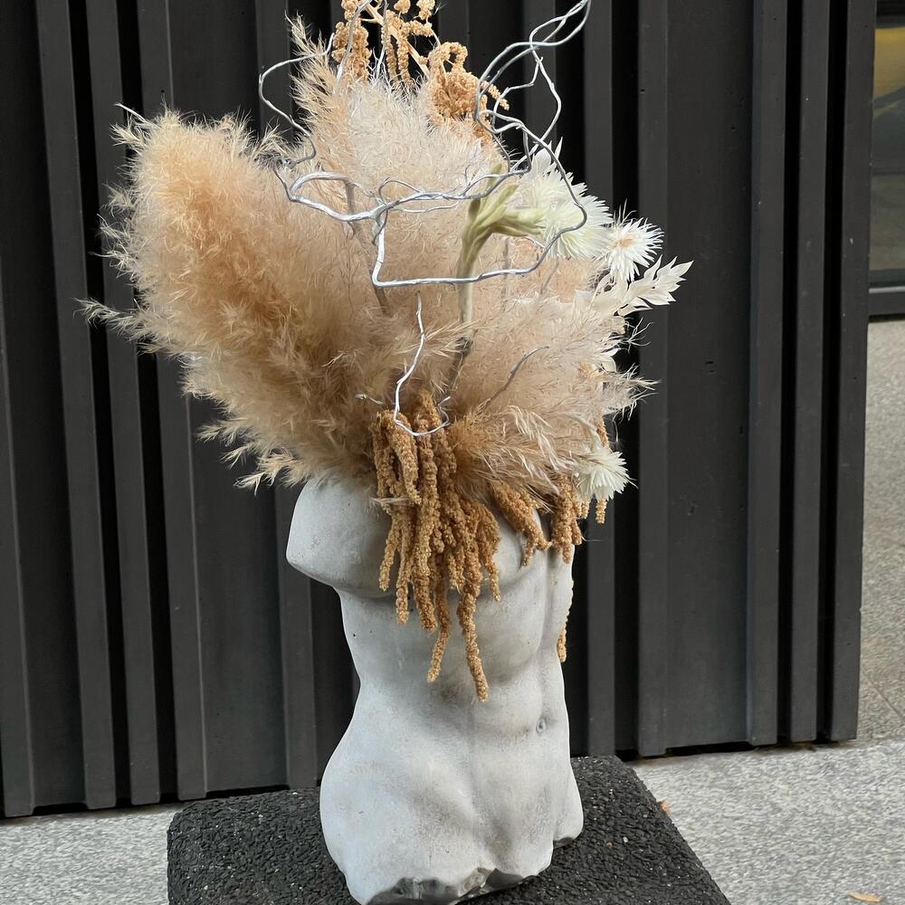 Man s body with dry flowers