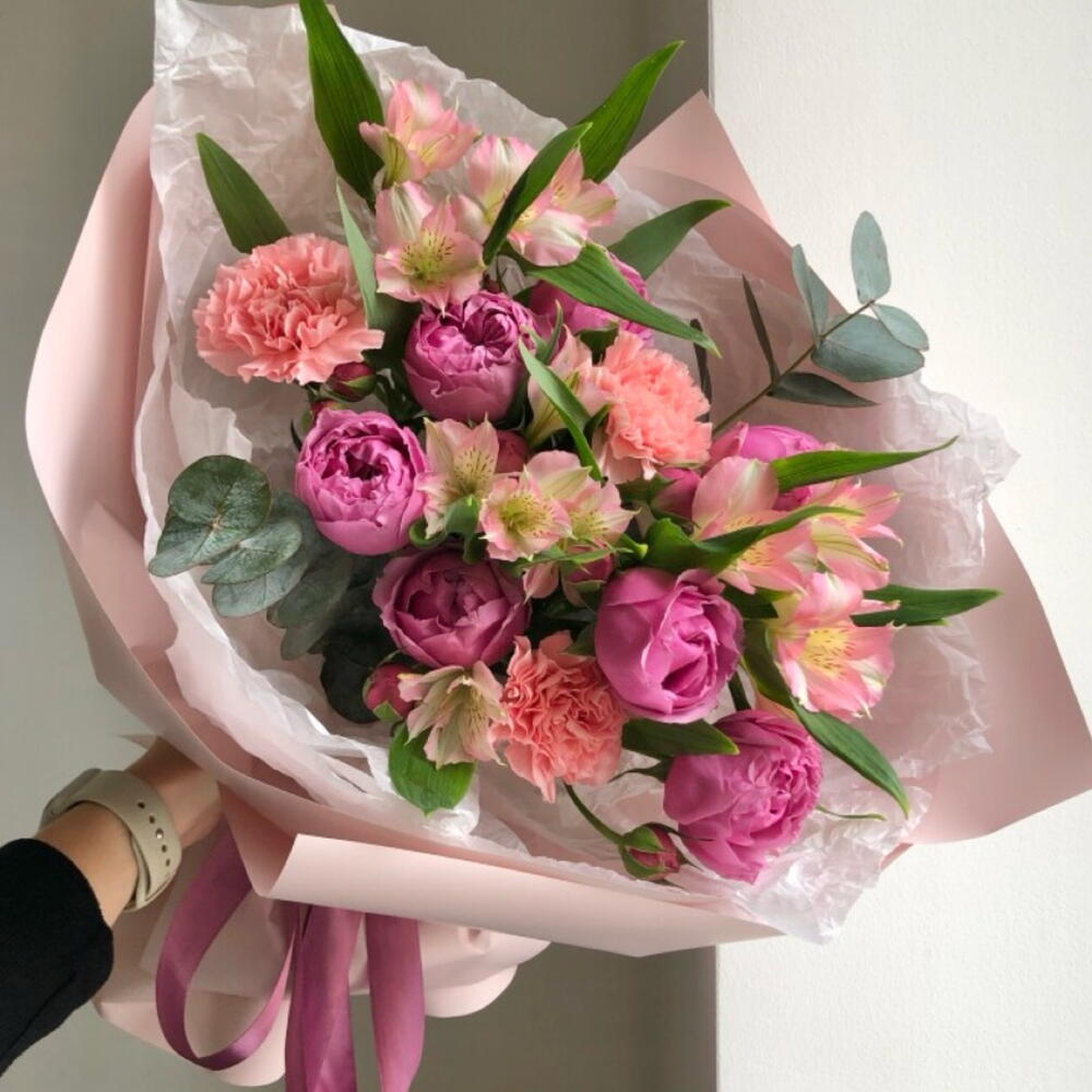Piękny kobiecy bukiet. Kwiaty świeże. Świetna obsługa. Dostawa zgodnie z ustaleniami. Terminowo, szybko i bardzo sprawnie.