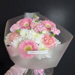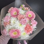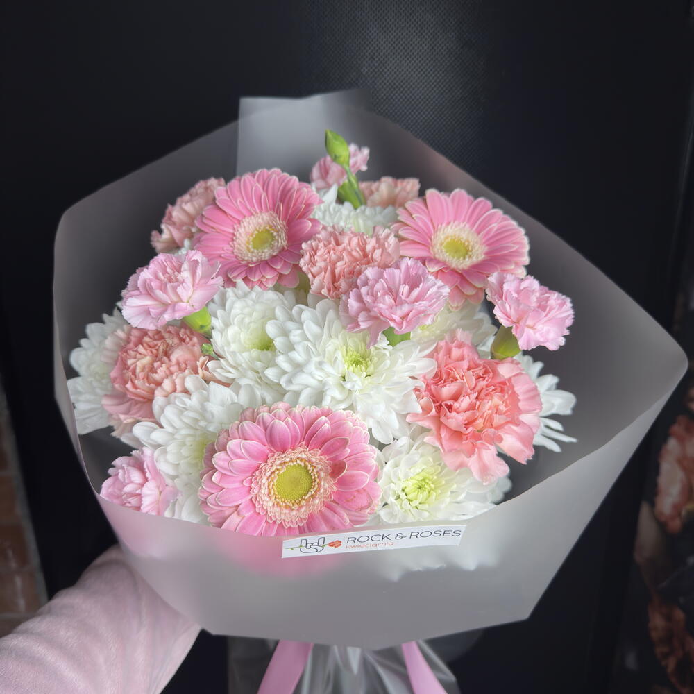 🌸 Pastelowy miks marzeń: Różowe gerbery, goździki chryzantemy / Delikatny miks: Różowe gerbery, goździki i biała chryzantema