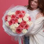 bukiet intensywnie różowych róż candy xpression i krystalicznie białych róż playa blanca - 25 szt.