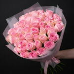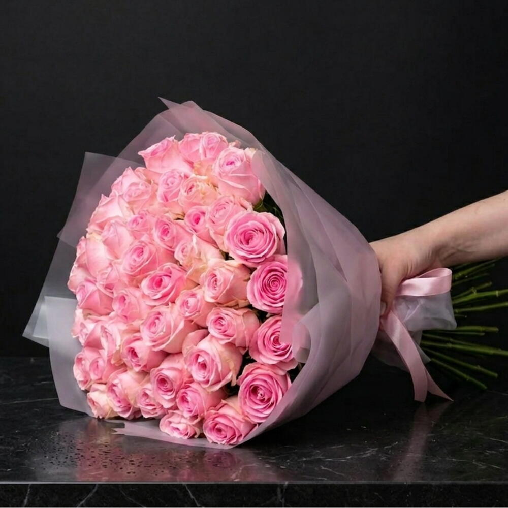 Niezrównany symbol wdzięku, podziwu i czystego romansu! Zapierający dech w piersiach, masywny, monobukiet z najwyższej jakości, delikatnych, różowych róż. Starannie dobrane ze względu na bujne, aksamitne płatki i delikatny zapach, róże te tworzą spektakularną, obszerną chmurę. Bukiet jest zapakowany w modny, minimalistyczny, matowy papier, który doskonale podkreśla naturalne piękno kwiatów, nie odwracając od nich uwagi. Niezależnie od tego, czy chodzi o ważną rocznicę, urodziny, zaręczyny, czy po prostu o powiedzenie „kocham cię”, ta luksusowa kompozycja gwarantuje niezapomniany efekt WOW. Tagi: 51 róż, Różowe róże, Bukiet premium, Bukiet gigant, Romantyczne kwiaty, Prezent na rocznicę, Luksusowe róże, Bukiet urodzinowy, Pastelowe róże.