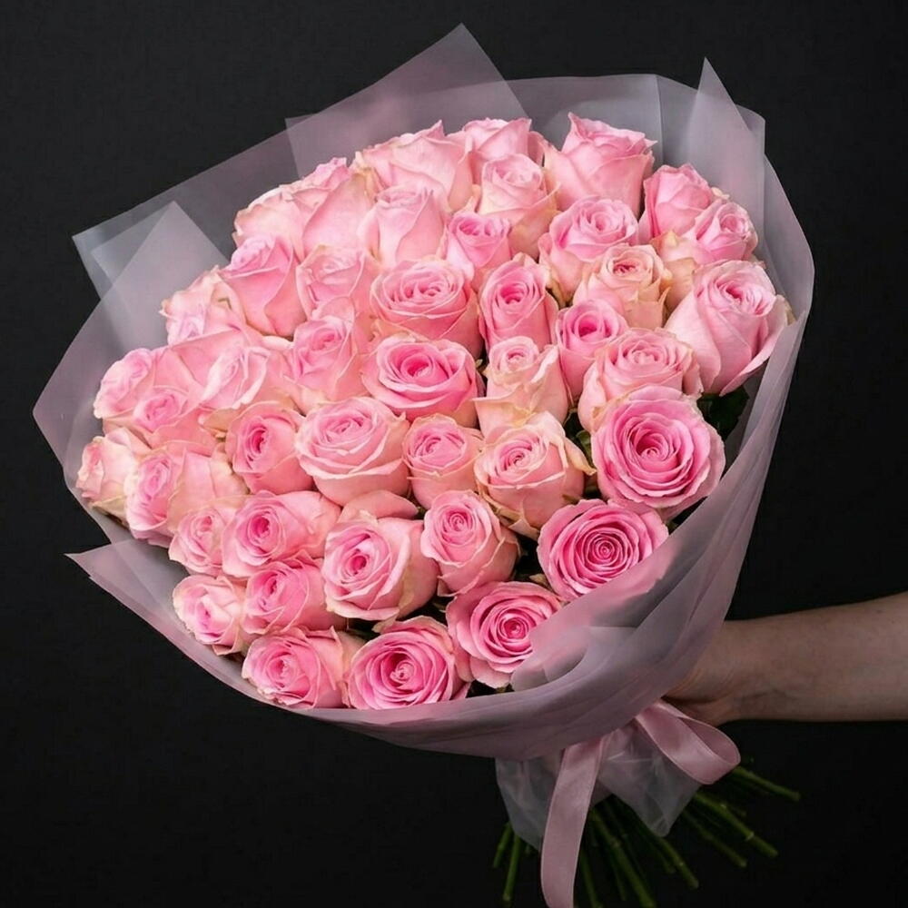 🌺 Elegancja premium: Bukiet 51 delikatnych różowych róż (50)