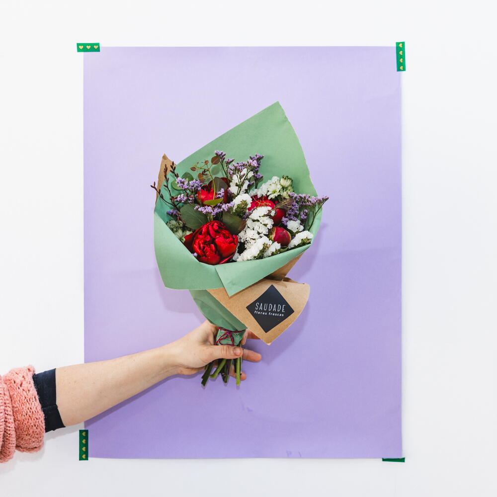 Ramo especial com 4 peónias frescas, com apontamentos de flores em tons neutros e verdes da época, embaladas em papel kraft premium e cordão de algodão 100% nacional. * Tentamos sempre compor no mesmo ramo peónias em estágios diferentes de maturação para que possa apreciar a maravilha do “BLOOM” 🙂 * Peónias são delicadas, troque a água diariamente, corte um bocado dos pés, mantenha o jarro limpo, manter o ramo longe de fontes de calor, vento e sol.