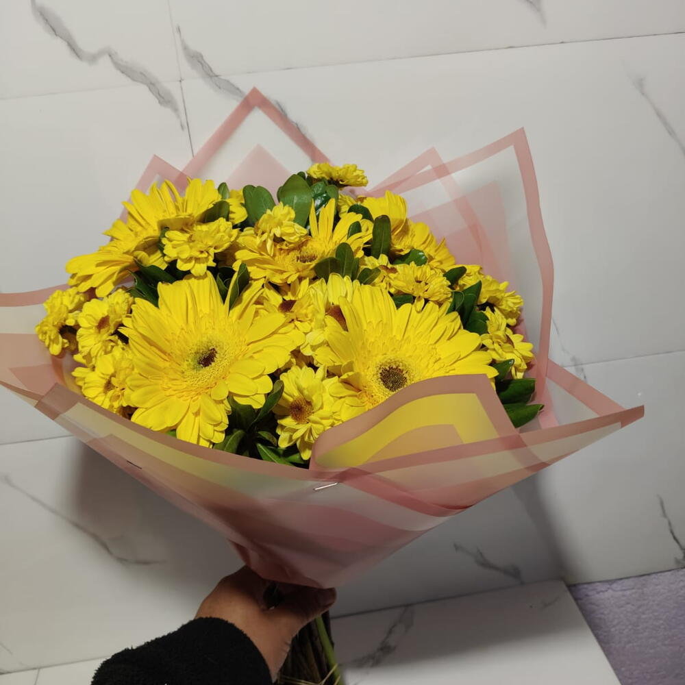 Ramo de gerberas amarillas con margaritas amarillas