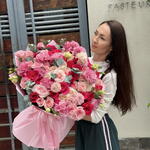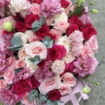 Eustoma - 9 szt. Eukaliptus - 9 szt. pink floyd róża - 40 szt. paper packing - 6 szt. ohara pink roses - 35 szt.