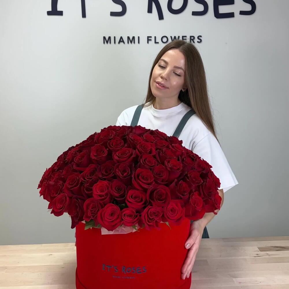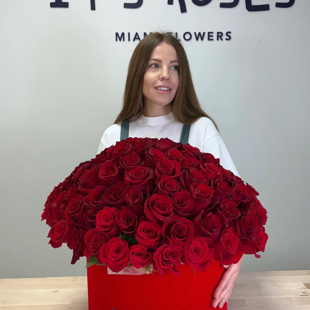 Luxury Red Roses in Velvet Box – 70–75 Premium Stems Make an unforgettable statement of love with this stunning luxury arrangement of 70–75 premium red roses, beautifully presented in an elegant red velvet box. Designed to impress from the very first glance, this arrangement is the ultimate symbol of passion, romance, and devotion. Each rose is handpicked for its size, freshness, and rich red color, then expertly arranged to create a full, breathtaking display. The luxurious velvet box adds a sophisticated touch, turning this bouquet into a true show-stopping gift. Perfect for Valentine’s Day, anniversaries, proposals, or any moment when words aren’t enough. This rose box speaks for you — boldly, beautifully, and from the heart. ❤️ Perfect for: • Valentine’s Day • Anniversaries • Proposals • Romantic surprises • Special celebrations • Expressing love, admiration appreciation ✨ Details: • 70–75 premium fresh red roses • Elegant luxury red velvet box • Professionally arranged by expert florists • Same-day delivery available in Miami A powerful romantic gesture that will be remembered forever.