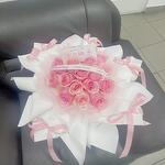 luxurious arrangement of soft pink roses, perfectly complemented by pristine white wrapping and delicate pink ribbons. This bouquet exudes sophistication and grace, making it the ideal choice for celebrating milestones, expressing love, or simply brightening someone’s day. Each rose is a testament to timeless beauty and heartfelt sentiment.