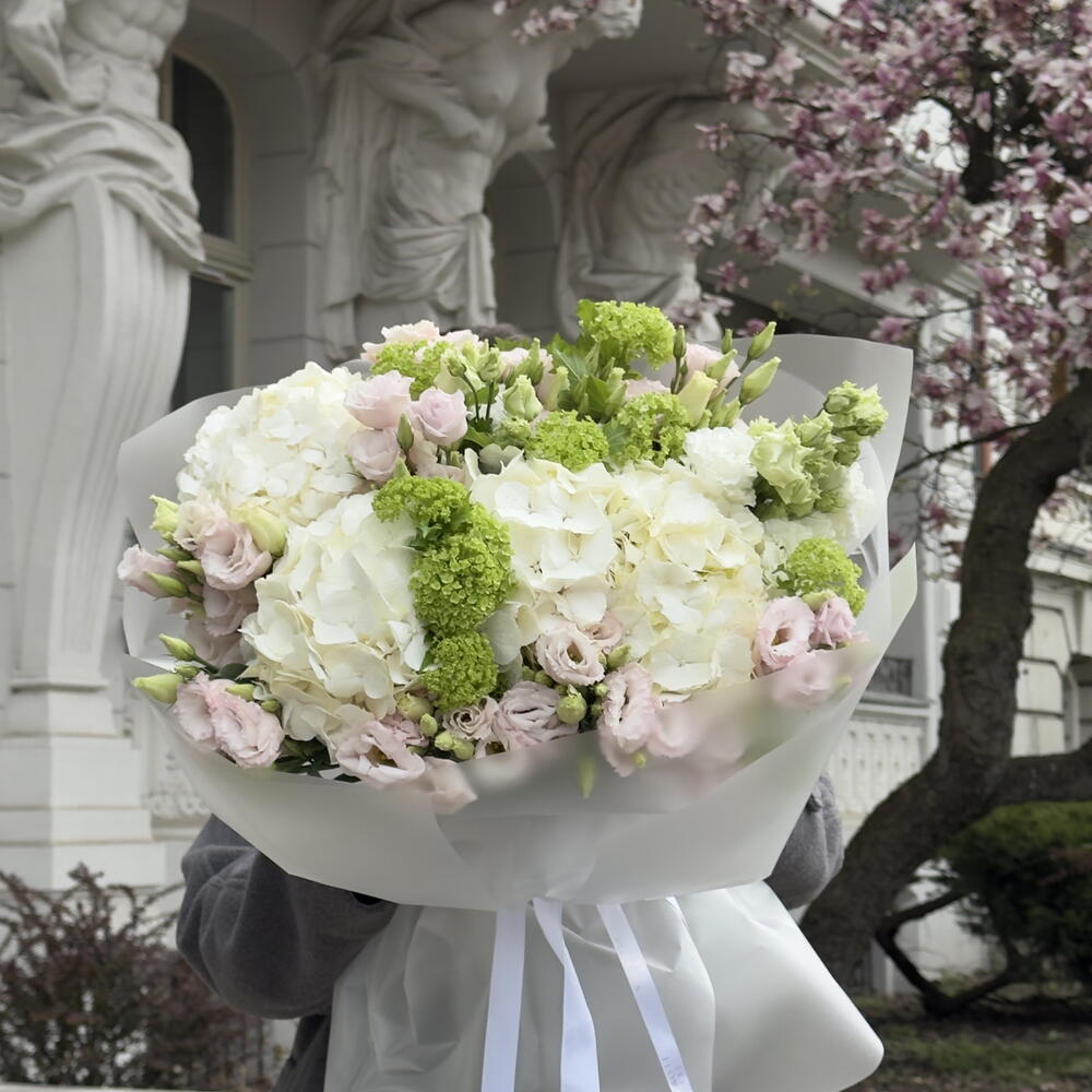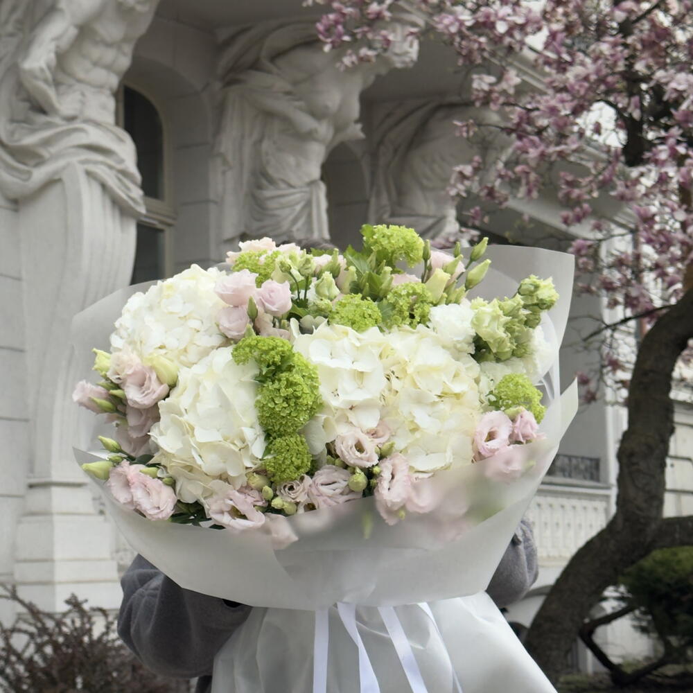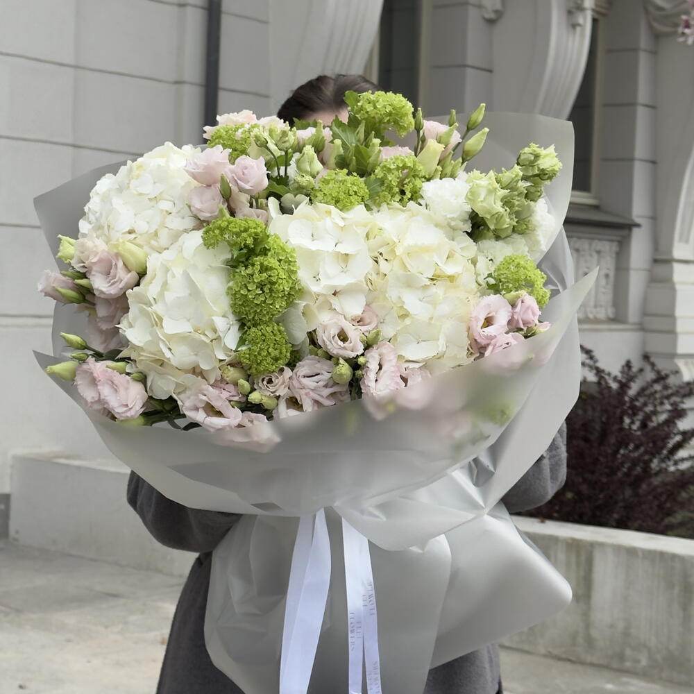 Eustoma - 12 szt. Kalina - 5 szt. hortensja biała - 4 szt.
