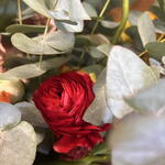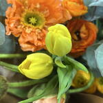 Tulipany - 10 szt. ranunculus - 10 szt. eukaliptus - 7 szt. violaciocche - 5 szt. maki - 10 szt.