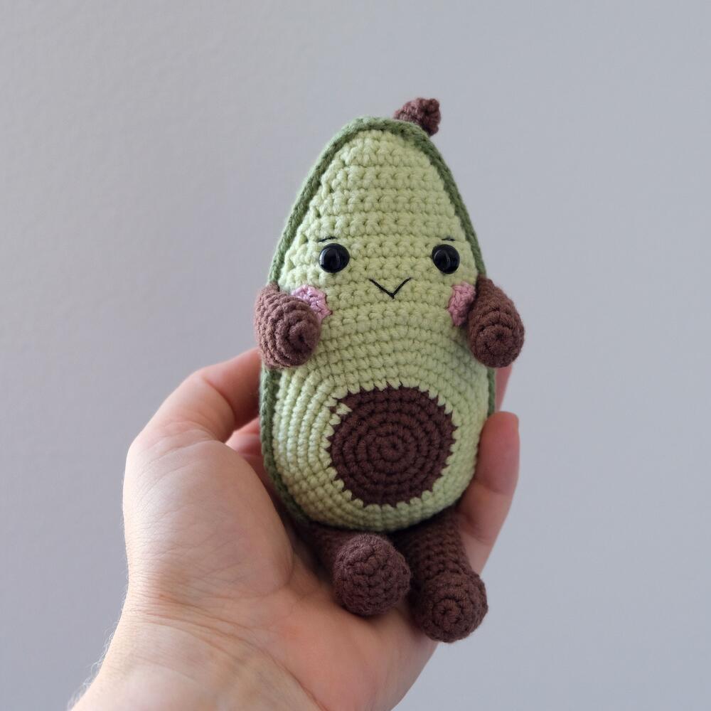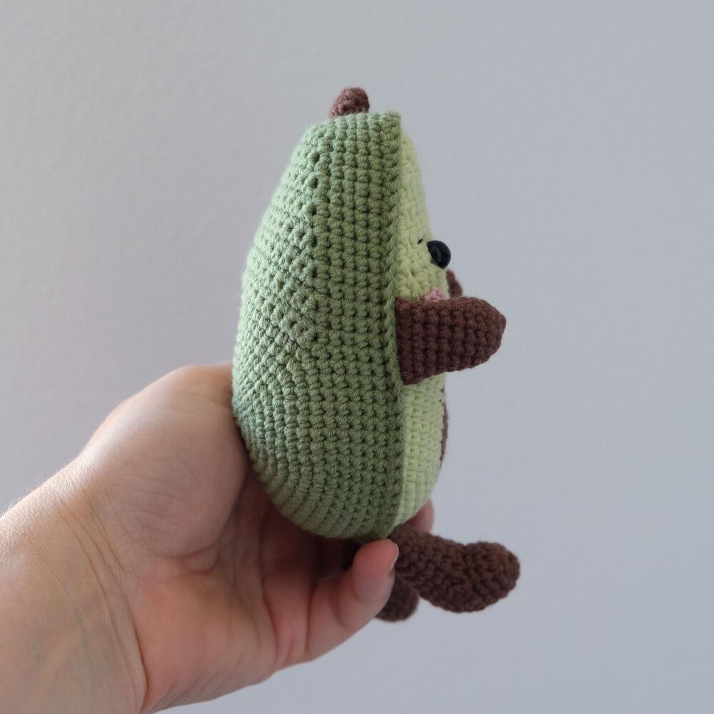 The Cute Avocado is hand-crocheted. The size of the toy is 18 cm. 13 cm is the size of a sitting toy. The toy is made of cotton with acrylic yarn and filled with high-quality hypoallergenic filler. Product care: hand wash in cold water, hand wringing and drying on a horizontal surface.