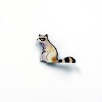 Picturesque racoon pin. Size 55 x 40 mm. Covered with waterproof print