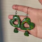 Kolczyki " Oddech lasu" ze stali chirurgicznej, modeliny i żywicy