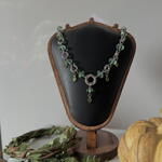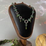 A spring fairy necklace with green faceted glass beads that sparkle with sunbeams. The clasp is a crab claw, the length is 46 cm.