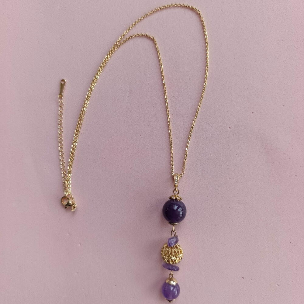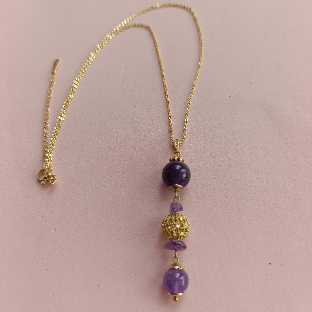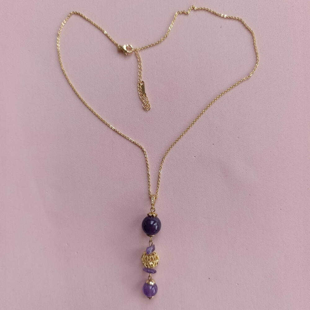 Delicate 45 cm chain featuring a beautiful amethyst pendant. Elegant and versatile, perfect for everyday wear or special occasions. Available gift box 🎁