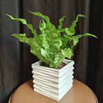 Asplenium, also known as the Bird’s Nest Fern, is admired for its bright green, wavy fronds that grow in a beautiful rosette shape. Its lush, fresh appearance brings a natural, calming atmosphere to any interior. Planted in a modern white square striped pot, this fern becomes a stylish décor piece that fits perfectly into minimalist, Scandinavian, or contemporary spaces. A wonderful choice for home, office, or as a thoughtful green gift. Perfect for: — modern interiors — desks and shelves — housewarming gifts — plant lovers — adding freshness to small spaces What you’ll receive: ✔ Live Asplenium plant ✔ Decorative white square striped pot ✔ Healthy, vibrant foliage ✔ Ready-to-display arrangement