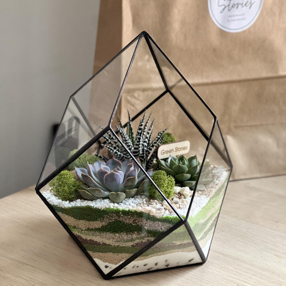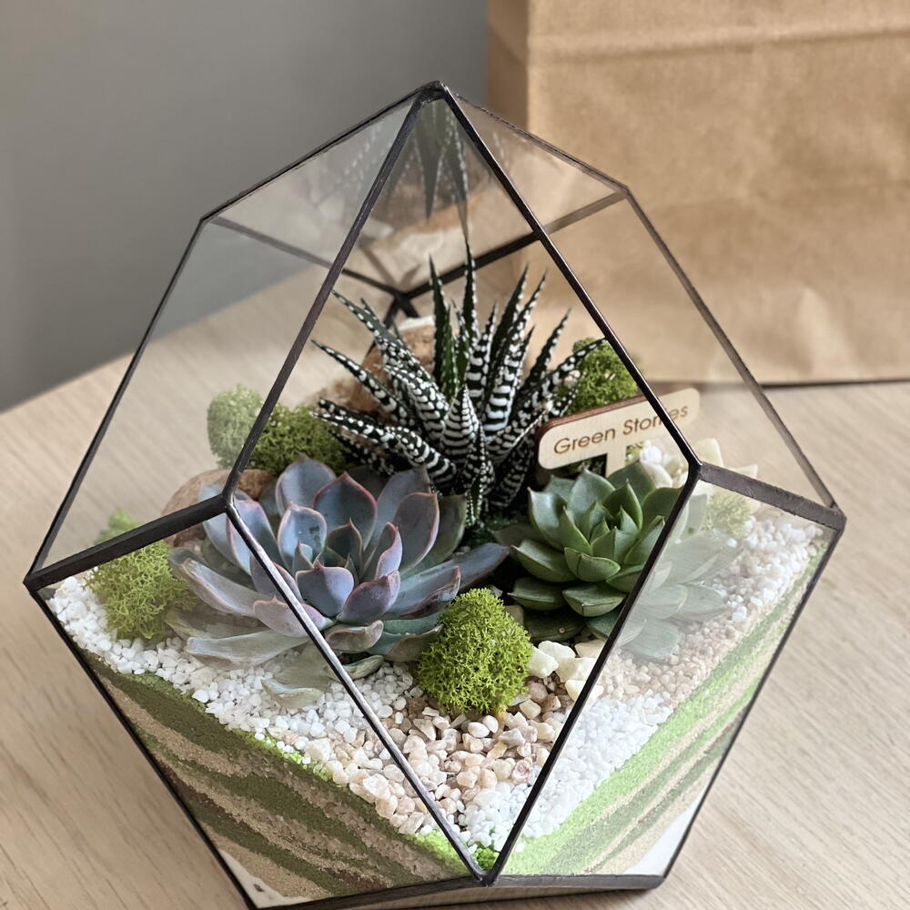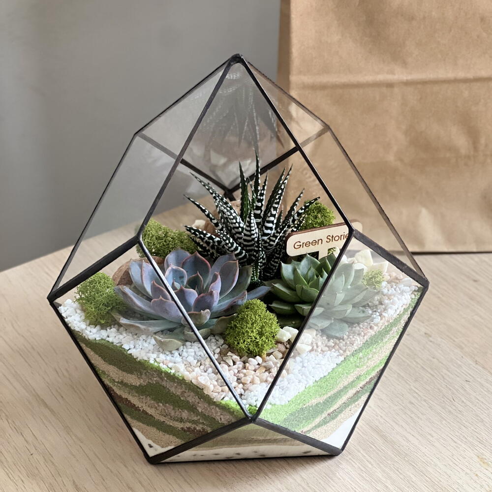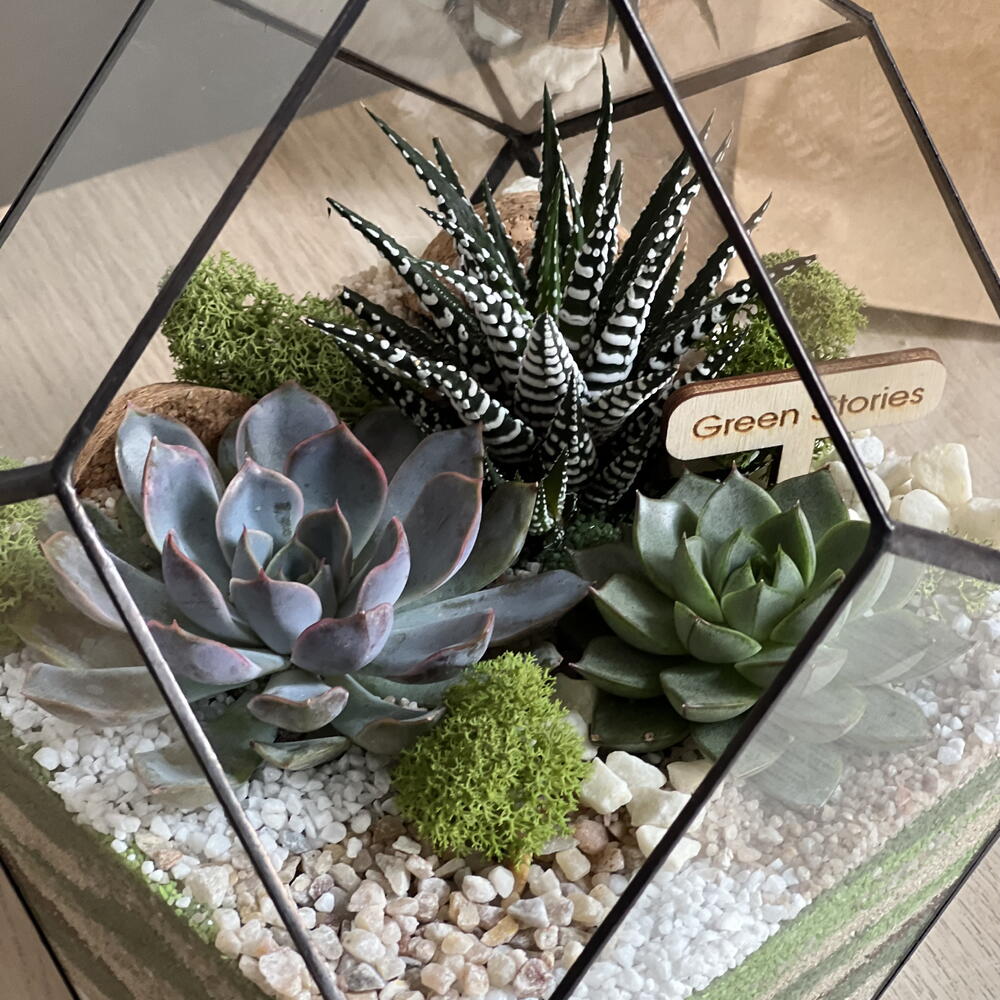 Bring nature into your space with this elegant succulent terrarium. Low-maintenance, stylish, and full of character — it’s the perfect green accent for your desk, shelf, or a thoughtful gift that lasts. Place in bright, indirect light. Water sparingly — about once every 2–3 weeks. Let the soil dry completely between waterings. No misting needed.